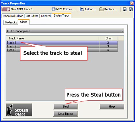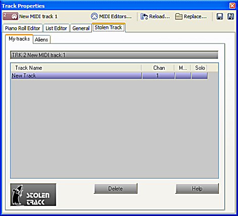 Repeat Steps 2 and 3 to insert StolenTrack into the properties of this new MIDI track. Then select the Stolen Track tab.