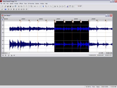 Play the new looped section. If this new selection doesn’t loops seamlessly, adjust the right hand selection point until it does. Do not at any time adjust the left hand selection point. Doing so will interrupt the flow of the song. Move the right selection point, if needed, to make the measure loop seamlessly. Copy this selection to a new wave with Ctrl+C, Ctrl+E.